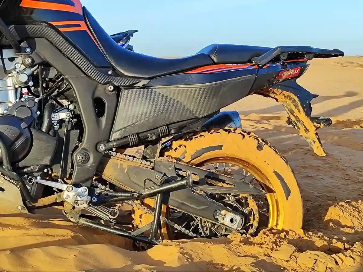 У байка — два топливных бака общим объемом 39 литров, что обеспечивает «дальнобойность» под 900 км. Правда, этот показатель во многом зависит от стиля вождения, но даже если гнать по грунтовкам с предельной скоростью, такой запас топлива все же вселяет уверенность, что вы не останетесь в степи с обсохшим баком.