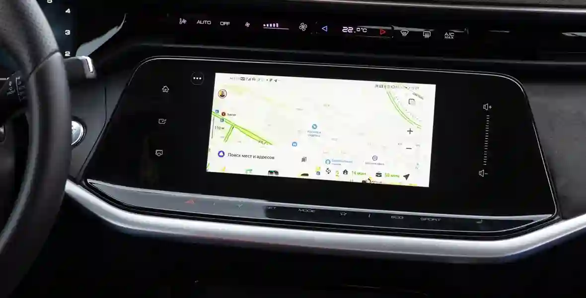 А там по меркам китайских автомобилей — прошлый век. Интерфейс комплекса невзрачный, не очень логичный, а на тестовом автомобиле (не самой свежей версии) ещё и местами кривовато русифицированный. Всё, что глубже «домашнего» экрана, — с мелкими меню, в пункты которых нужно тщательно целиться пальцами. Навигатор и Apple CarPlay отсутствуют, вместо Android Auto предлагается «местный» протокол СarbitLink, который зеркалит экран смартфона, но вынуждает держать его включённым, нагружая батарею устройства.