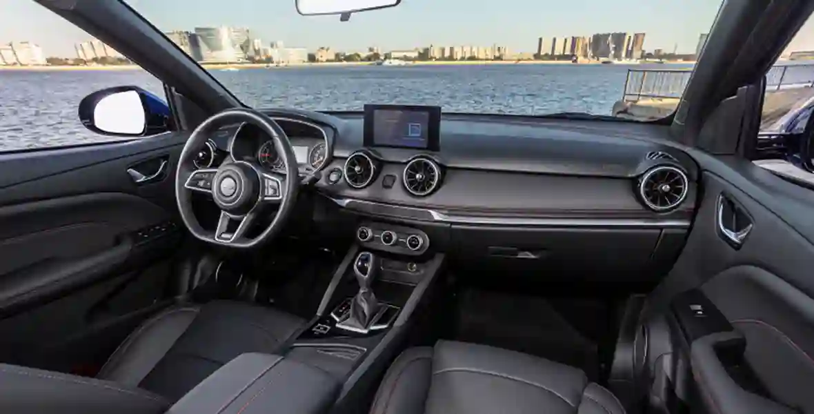 Руль регулируется исключительно по вертикали, но ход явно недостаточный. Пластик торпедо подчеркнуто твёрдый, как когда-то у Lifan, есть риск, что со временем начнёт скрипеть. «Приборка» аналоговая, чем-то напомнила Suzuki SX4. Цифрового варианта, как, например, у Evolute i-Joy, нет в принципе.